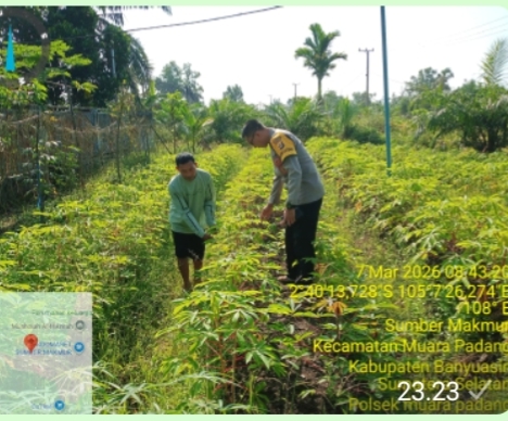 Oplus_131072 Humas Polres Bamyuasin Polda Sumsel Banyuasin –Sebagai bentuk dukungan terhadap program ketahanan pangan nasional, seorang Bhayangkara dari Polres Banyuasin, Polda Sumsel, Aipda Erwin Saputra terlihat aktif mendampingi warga binaannya dalam memanfaatkan lahan pekarangan rumah. Personel yang bertugas sebagai Bhabinkamtibmas ini tengah gencar melakukan pendampingan kepada warga di Desa Sumber Makmur, Kecamatan Muara Padang, Kabupaten Banyuasin. Dalam kunjungannya baru-baru ini, Aipda Erwin menyambangi Ayub, seorang warga yang memanfaatkan lahannya untuk bercocok tanam. Lahan seluas kurang lebih 10 meter persegi tersebut ditanami berbagai komoditas sayur mayur dan singkong. “Ada sekitar 150 batang tanaman yang sudah ditanam, mulai dari sayuran hingga singkong. Ini sangat positif untuk memenuhi kebutuhan sehari-hari,” ujar Aipda Erwin, Senin (26/2). Proses penanaman dilakukan secara manual menggunakan alat sederhana seperti cangkul dan parang. Menurut Aipda Erwin, kegiatan ini tidak hanya bertujuan untuk konsumsi rumah tangga, tetapi juga membuka peluang sebagai usaha rumahan jika dikelola dengan serius. “Hasil panen nantinya bisa untuk konsumsi sendiri, bahkan kalau berkembang bisa menjadi tambahan penghasilan keluarga,” tambahnya. Meski demikian, Aipda Erwin mengakui ada beberapa kendala yang dihadapi petani seperti Ayub, di antaranya ketersediaan pupuk dan kondisi cuaca yang tak menentu. Sebagai upaya mengatasi hal tersebut, ia memberikan edukasi mengenai penggunaan pupuk kandang sebagai alternatif pengganti pupuk kimia. “Kami memberikan pupuk kandang dan terus berkoordinasi dengan pihak terkait, seperti penyuluh pertanian, agar tanaman tetap tumbuh subur meskipun cuaca sedang tidak mendukung,” jelasnya. Kegiatan Aipda Erwin ini pun mendapat apresiasi dari masyarakat setempat. Kehadiran polisi di tengah warga tidak hanya memberikan rasa aman, tetapi juga motivasi untuk mandiri dalam bidang pangan. Navigasi pos Mudik Lebaran 2026: Angkutan Barang Dibatasi di Seluruh Jalur Sumatera Selatan Tanam Jagung dan Resmikan Jembatan Desa, Kapolri Perkuat Ketahanan Pangan di Sumsel