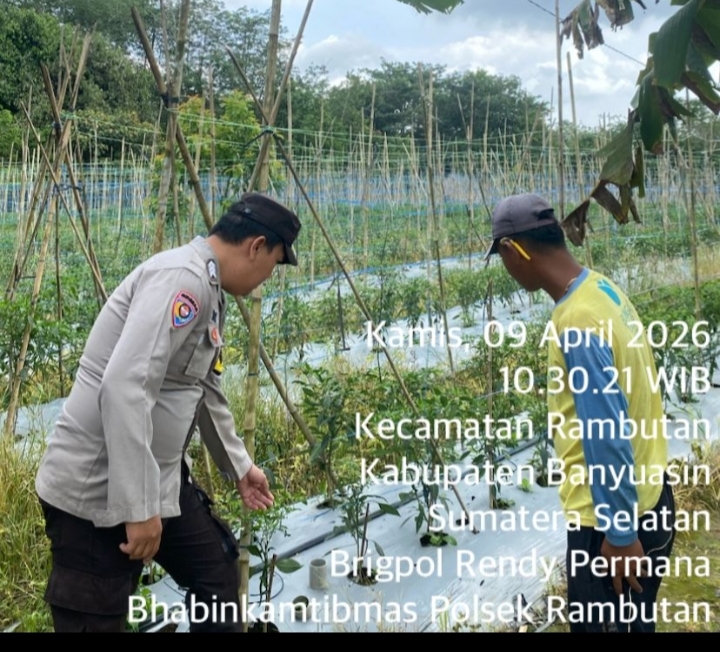 Oplus_131072 Banyuasin – Dalam upaya mendukung program strategis Presiden RI di bidang ketahanan pangan, jajaran Kepolisian Sektor (Polsek) Rambutan melalui personel Bhabinkamtibmas terus aktif melakukan pendekatan dan himbauan kepada masyarakat. Salah satu kegiatan terkini dilaksanakan pada Kamis (09/04/2026) di Desa Durian Gadis, Kecamatan Rambutan, Kabupaten Banyuasin. Bhabinkamtibmas Desa Durian Gadis, Brigpol Rendy Permana, memimpin langsung kegiatan himbauan dan penggerakan masyarakat untuk melaksanakan Program P2B (singkatan dari Program Peningkatan Produksi Pangan Berkelanjutan, sesuai konteks swasembada) yang sejalan dengan Program Presiden menuju Swasembada Pangan Nasional. Kegiatan yang berlangsung mulai pukul 13.00 WIB hingga selesai tersebut dihadiri oleh warga setempat dengan antusias. Dalam arahannya, Brigpol Rendy menekankan pentingnya peran serta seluruh lapisan masyarakat dalam mendukung ketahanan pangan, dimulai dari tingkat desa. “Mari kita manfaatkan lahan pekarangan, lahan tidur, dan optimalisasi lahan pertanian yang ada. Dukungan dari desa sangat vital untuk mewujudkan kemandirian pangan nasional. Polri hadir untuk menggerakkan dan memastikan program ini berjalan dengan aman dan kondusif,” ujar Brigpol Rendy dalam himbauannya kepada warga. Kapolsek Rambutan, dalam laporan tertulisnya kepada Kapolres Banyuasin, menyebutkan bahwa selama kegiatan berlangsung situasi di Desa Durian Gadis tetap aman, tertib, dan kondusif. Tidak ditemukan kendala berarti dalam penyampaian program tersebut. “Seluruh rangkaian kegiatan Bhabinkamtibmas berjalan lancar. Masyarakat menyambut baik himbauan yang disampaikan. Dokumentasi kegiatan telah kami lampirkan sebagai bentuk pertanggungjawaban,” demikian isi laporan resmi dari Polsek Rambutan. Laporan ini turut ditembuskan kepada Wakapolres Banyuasin, Kabag Ops Polres Banyuasin, serta Kasat Binmas Polres Banyuasin sebagai bentuk koordinasi dan sinergi internal kepolisian dalam mendukung program ketahanan pangan nasional. Navigasi pos DL (26), warga Jalan Krio Rojal Munir No. 263 RT. 011 RW. 003 Desa Regan Agung, Kecamatan Banyuasin III, ditemukan tewas tenggelam di sungai Desa Regan Agung, Rabu (8/4/2026) sore. “Revitalisasi Sangat Bermanfaat ” , Kepala Sekolah SMA Plus Negeri 2 Banyuasin lll Apresiasi Pemerintah.