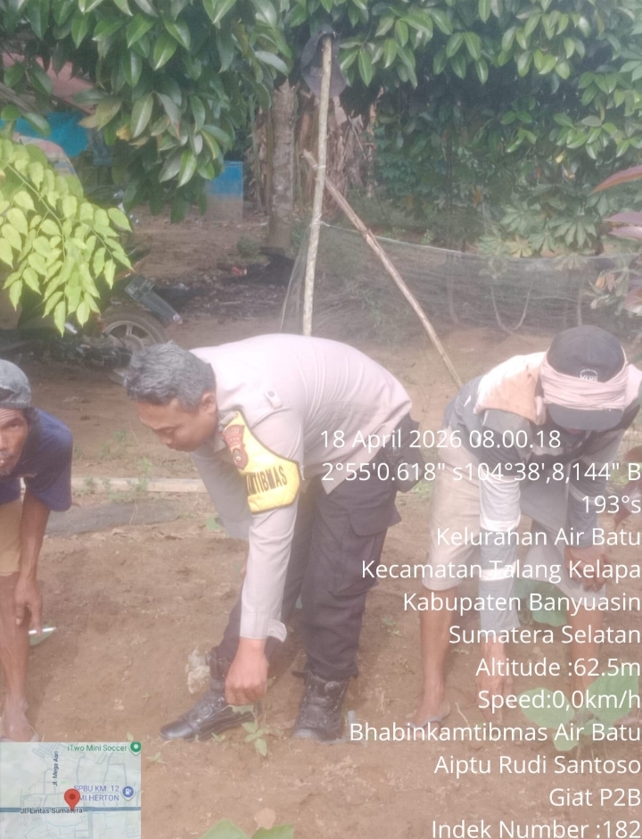 Oplus_131072 Humas Polres Banyuasin Polda Sumsel Banyuasin – Dalam upaya mendukung program strategis Pemerintah Pusat di bidang ketahanan pangan, AIPTU Rudi Santoso, Bhabinkamtibmas Polsek Talang Kelapa, menggelar kegiatan himbauan dan penggerakan masyarakat di Kelurahan Air Batu, Kecamatan Talang Kelapa, Kabupaten Banyuasin, pada Sabtu (18/4/2026) siang. Kegiatan yang berlangsung mulai pukul 13.00 WIB hingga selesai ini difokuskan pada pelaksanaan Program P2B (Pangan, Pakan, dan Energi/Bioenergi) yang merupakan bagian dari dukungan nyata kepolisian terhadap program swasembada pangan nasional yang dicanangkan Presiden RI. Di tengah suasana yang hangat, AIPTU Rudi Santoso secara langsung berinteraksi dengan warga. Ia tidak hanya menyampaikan himbauan, tetapi juga menggerakkan partisipasi aktif masyarakat untuk memaksimalkan potensi lahan dan sumber daya lokal guna mendukung kemandirian pangan. “Program ini adalah amanat Presiden untuk mewujudkan ketahanan pangan nasional. Peran serta masyarakat di tingkat kelurahan seperti Air Batu ini sangat penting. Kita mulai dari hal kecil, seperti memanfaatkan pekarangan dan lahan tidur untuk ditanami komoditas pangan bernilai ekonomi,” ujar AIPTU Rudi Santoso saat ditemui di lokasi kegiatan. Sepanjang kegiatan berlangsung, situasi di Kelurahan Air Batu terpantau aman dan kondusif. Warga antusias menyambut himbauan tersebut dan berkomitmen untuk mendukung program ketahanan pangan sebagai bagian dari upaya menjaga stabilitas keamanan dan kesejahteraan bersama. Kapolsek Talang Kelapa dalam laporannya kepada Kapolres Banyuasin menyampaikan apresiasi atas inisiatif Bhabinkamtibmas yang terus aktif menyentuh langsung program-program strategis di lapangan. Kegiatan ini merupakan bukti nyata bahwa pengabdian kepolisian tidak hanya berfokus pada keamanan semata, tetapi juga pada peningkatan kesejahteraan masyarakat. Navigasi pos Malang Najwanews Dalam melestarikan adat istiadat Dusun Tegal Rejo ketindan lawang kabupaten Malang 17 /04/2026